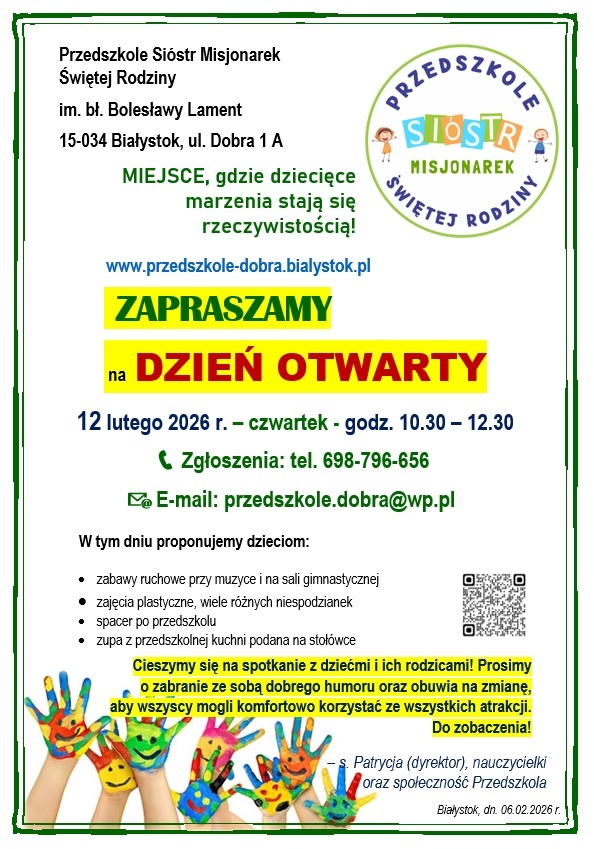 Rekrutacja do Przedszkola Sióstr Misjonarek Śwętej Rodziny w Białymstoku na rok szkolny 2026/2027!